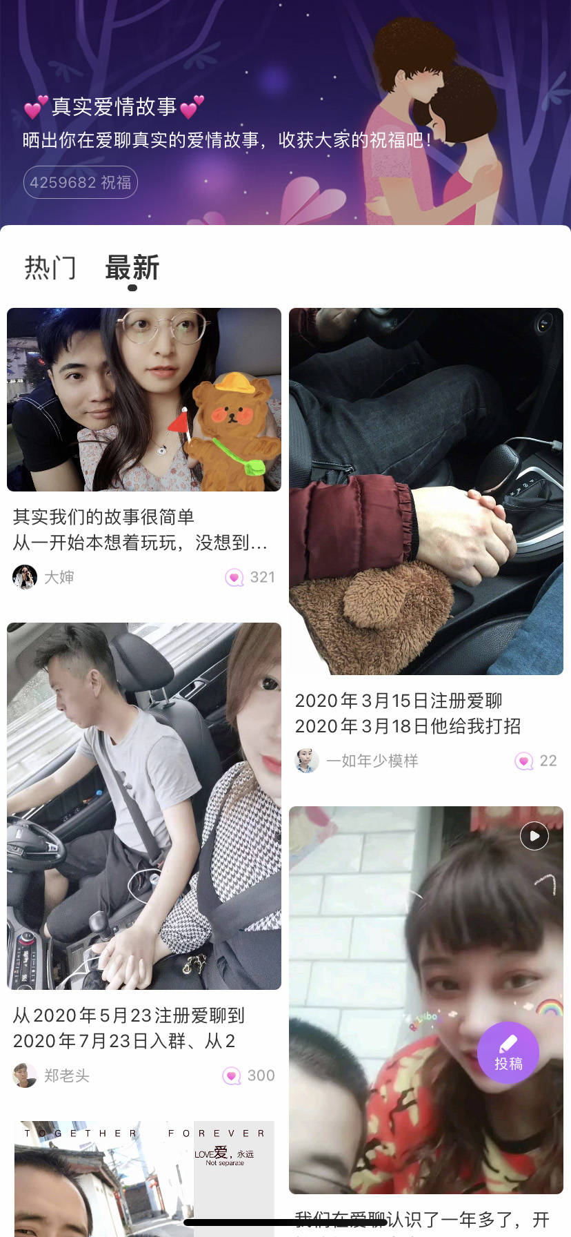 在爱聊“动态”顶部的真实爱情故事里,有这样一对“特殊情侣”。